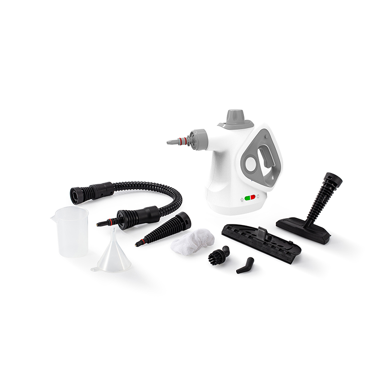 Le kit de nettoyeur vapeur portable multi-surfaces pour la maison TM-377 est livré avec 9 accessoires standard, dont une longue buse de pulvérisation, une buse courbée, une buse à brosse ronde et un tuyau d'extension, ce qui le rend adapté au nettoyage de diverses surfaces telles que les sols, les fenêtres, les comptoirs de cuisine et les tissus d'ameublement. Le cordon d'alimentation de 3 mètres offre une flexibilité pour les grandes surfaces, tandis que sa conception légère et compacte le rend facile à manœuvrer et à ranger. Ce cuiseur vapeur portatif est une solution efficace pour un nettoyage et une désinfection en profondeur, offrant un moyen sûr et sans produits chimiques de nettoyer votre maison.